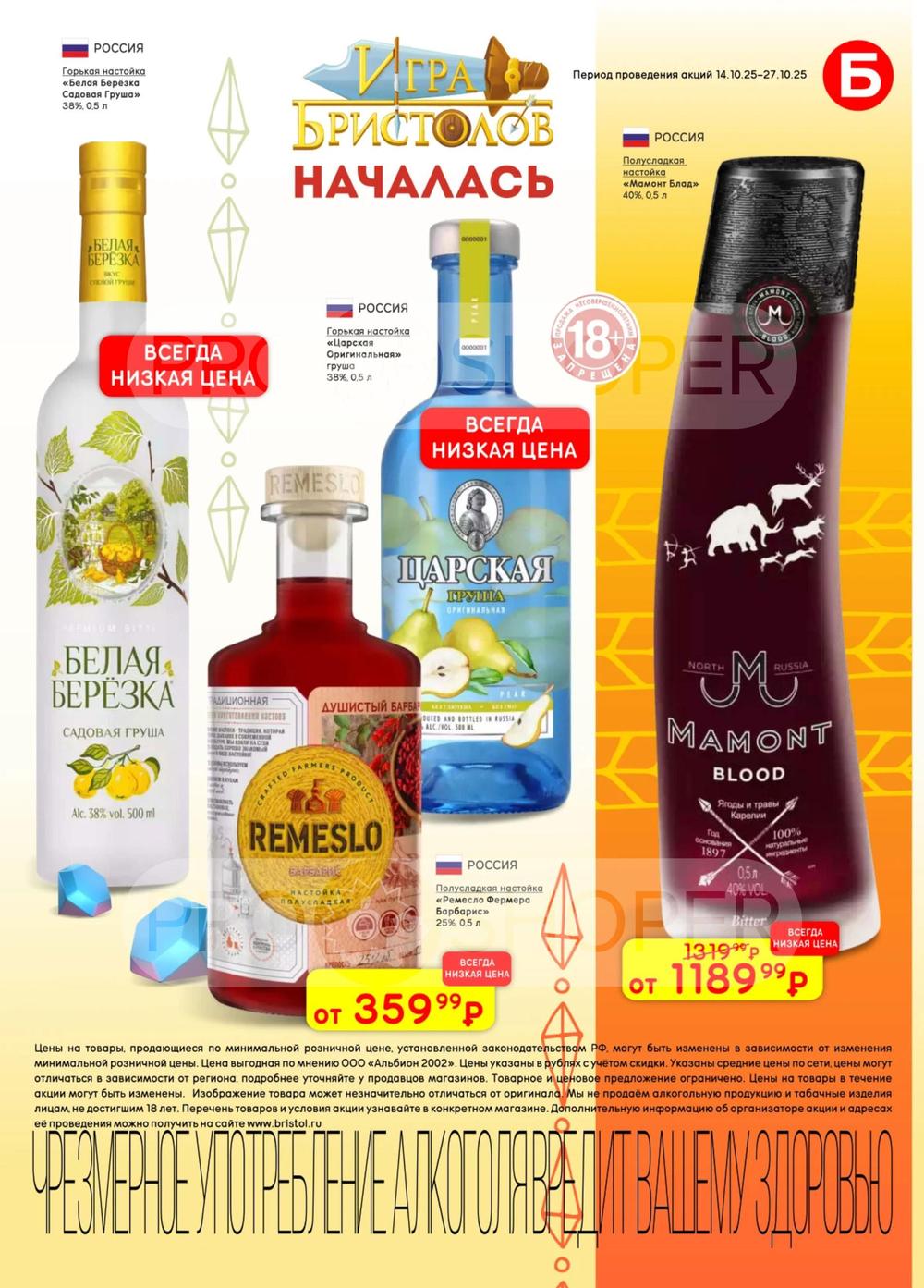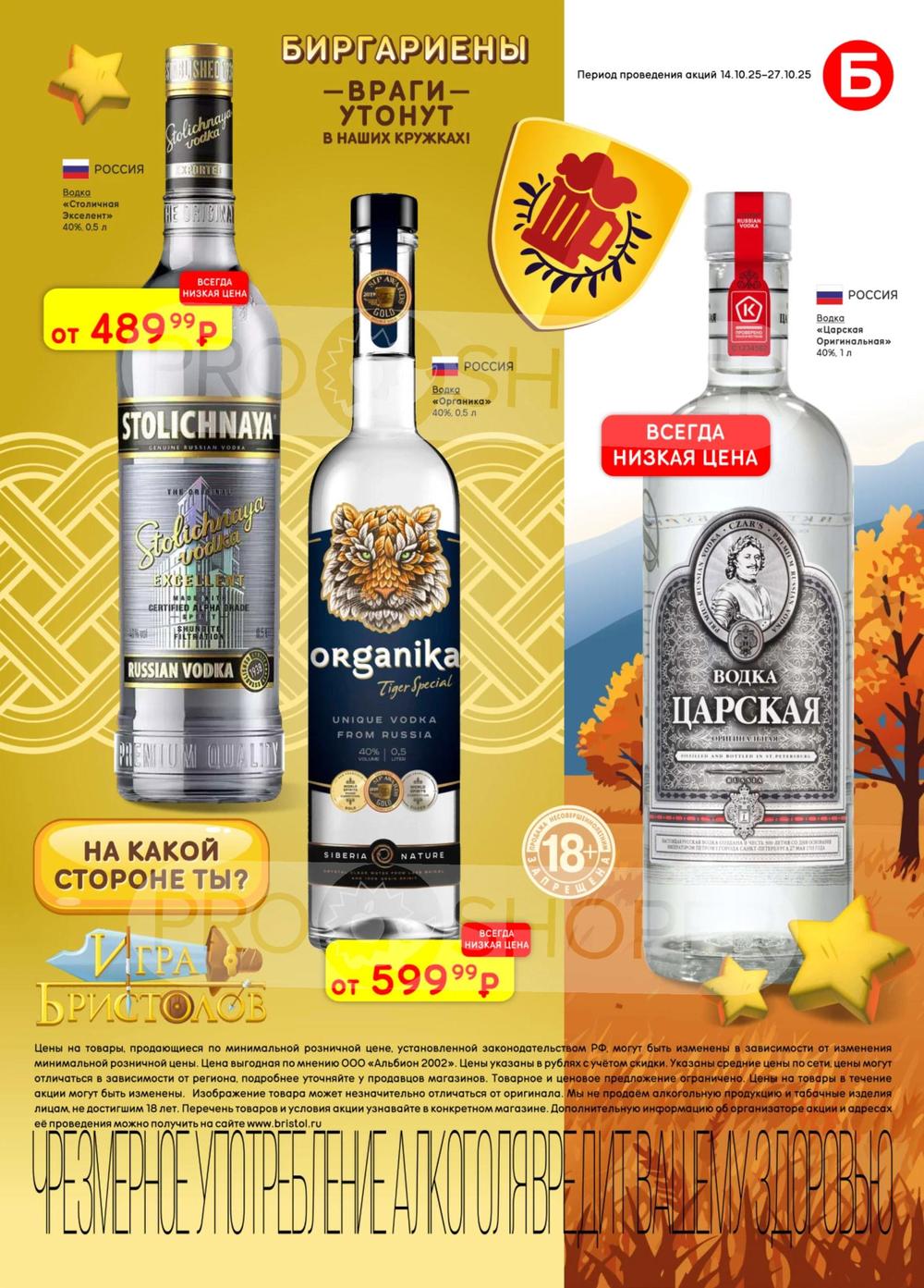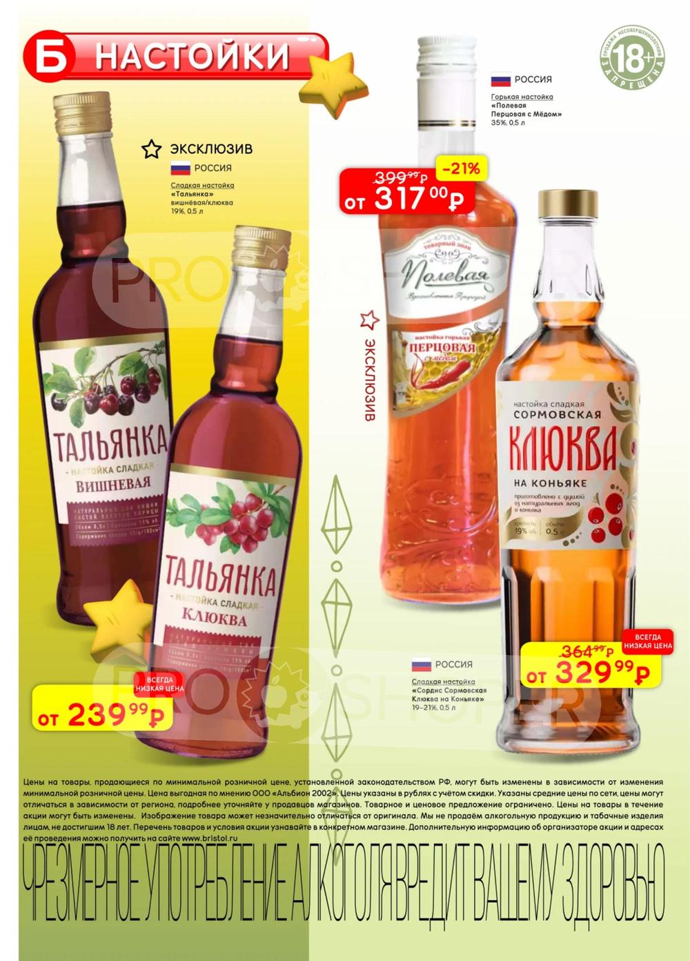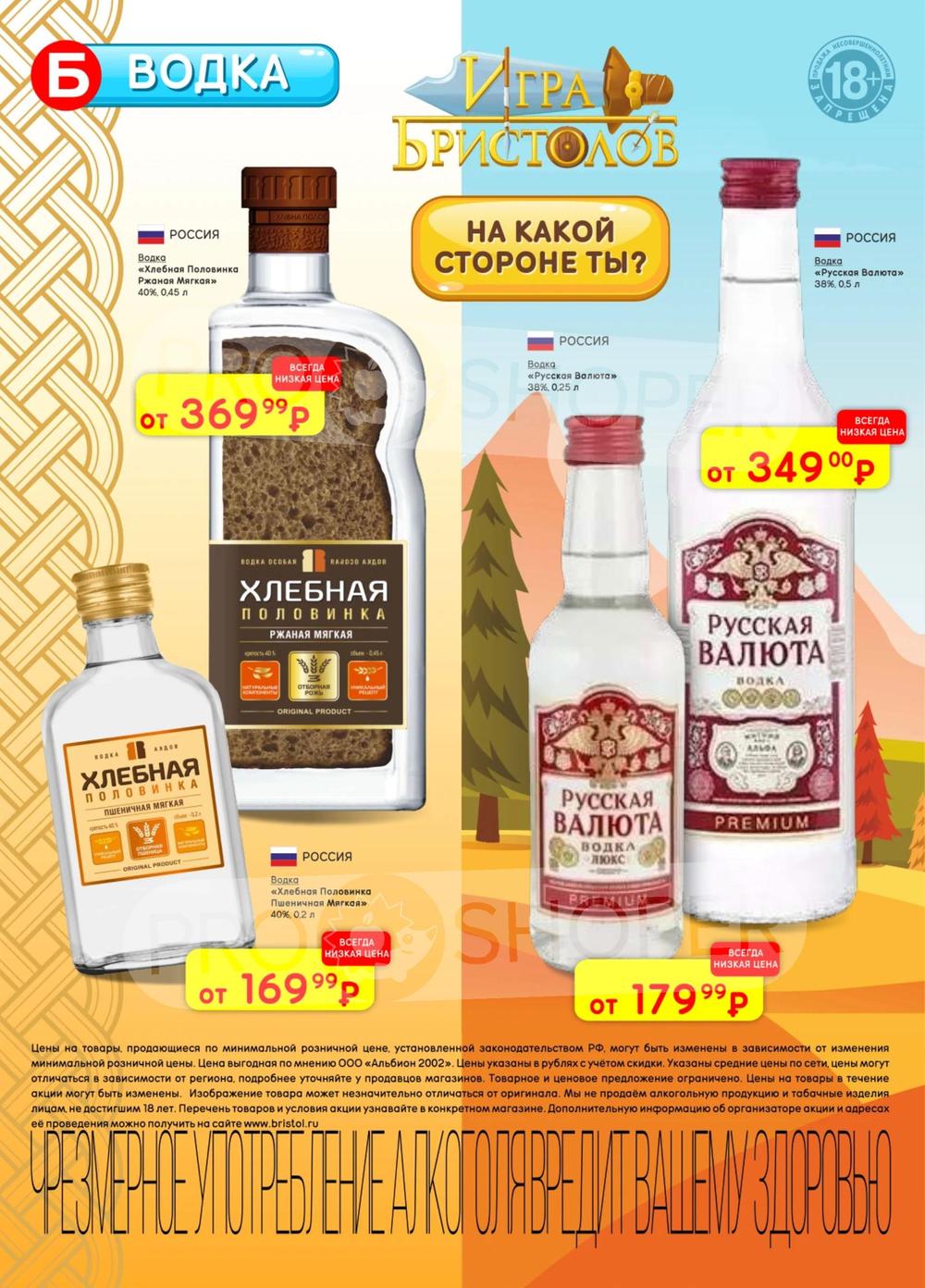С учётом постоянного роста цен на данные виды продукции во многих торговых точках стали появляться контрафактные и контрабандные товары сомнительного качества. «Бристоль» поставил перед собой высокую цель - посредством широкого выбора по выгодным ценам предотвратить распространение на рынке нелегальной продукции, наносящий урон населению и государству. Покупая продукцию из каталога по акции, можно приобретать товары высокого качества по доступным ценам со скидкой.