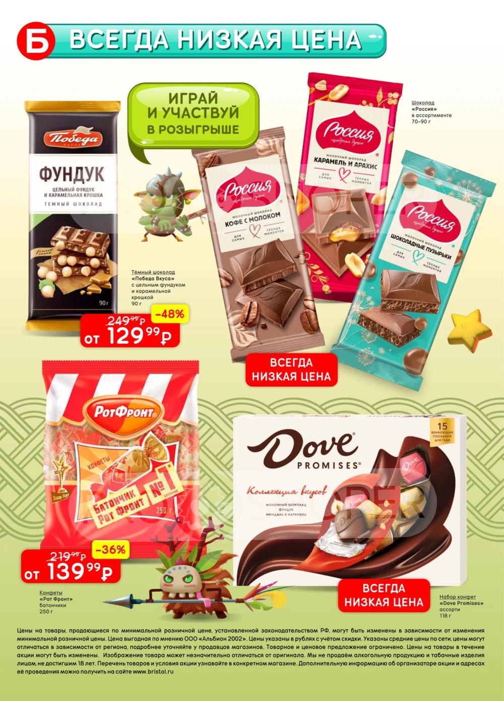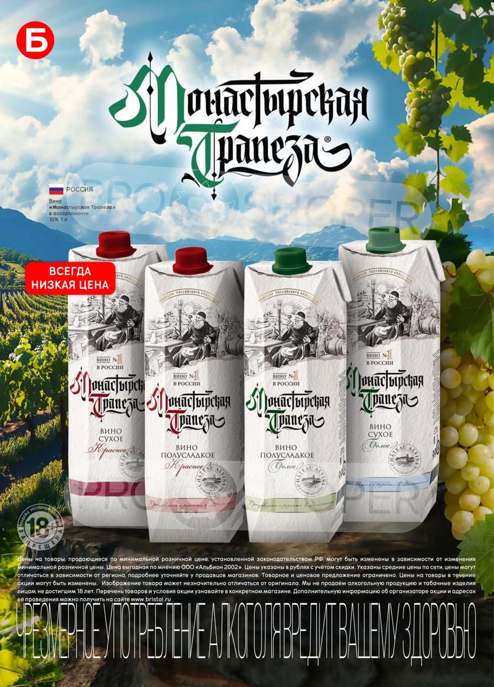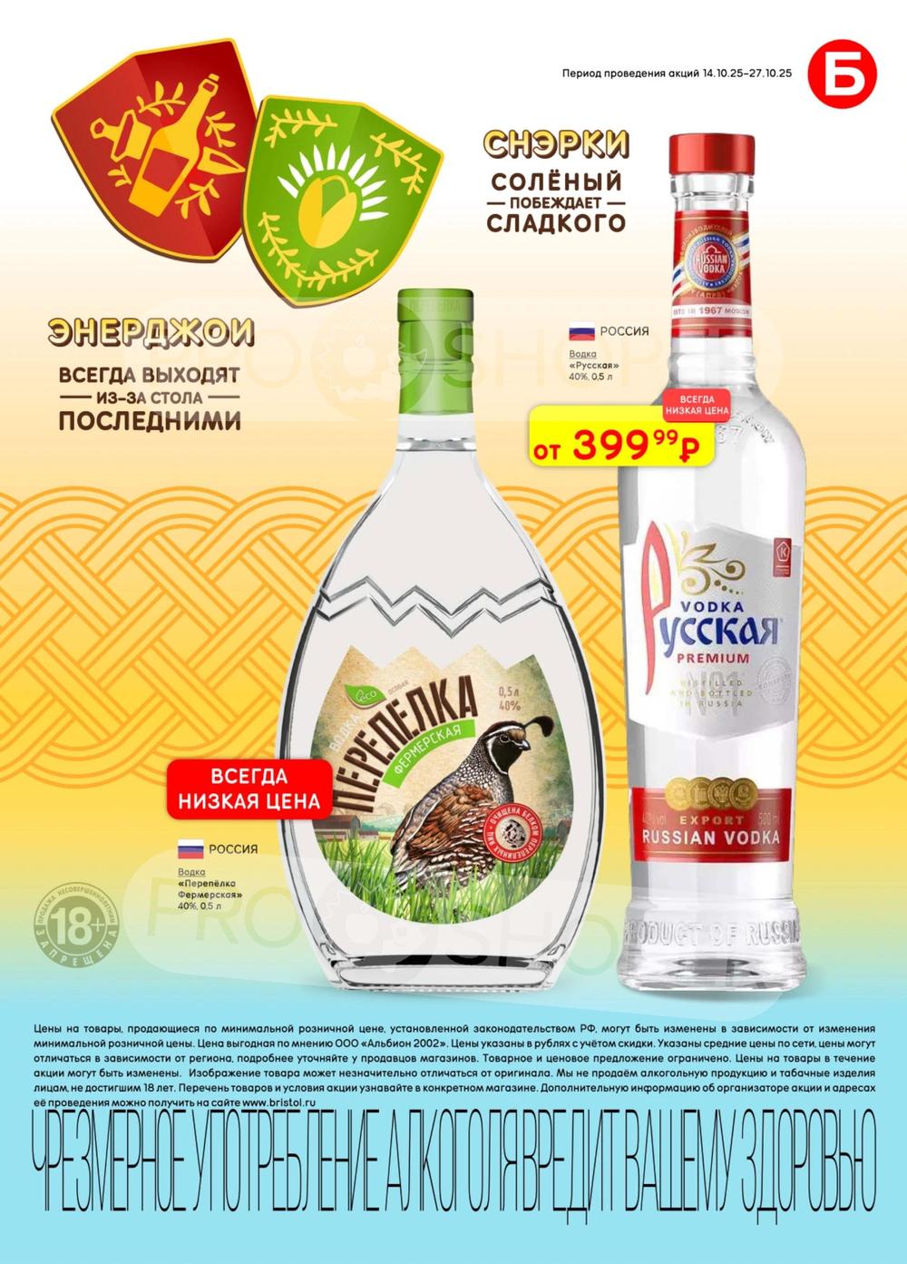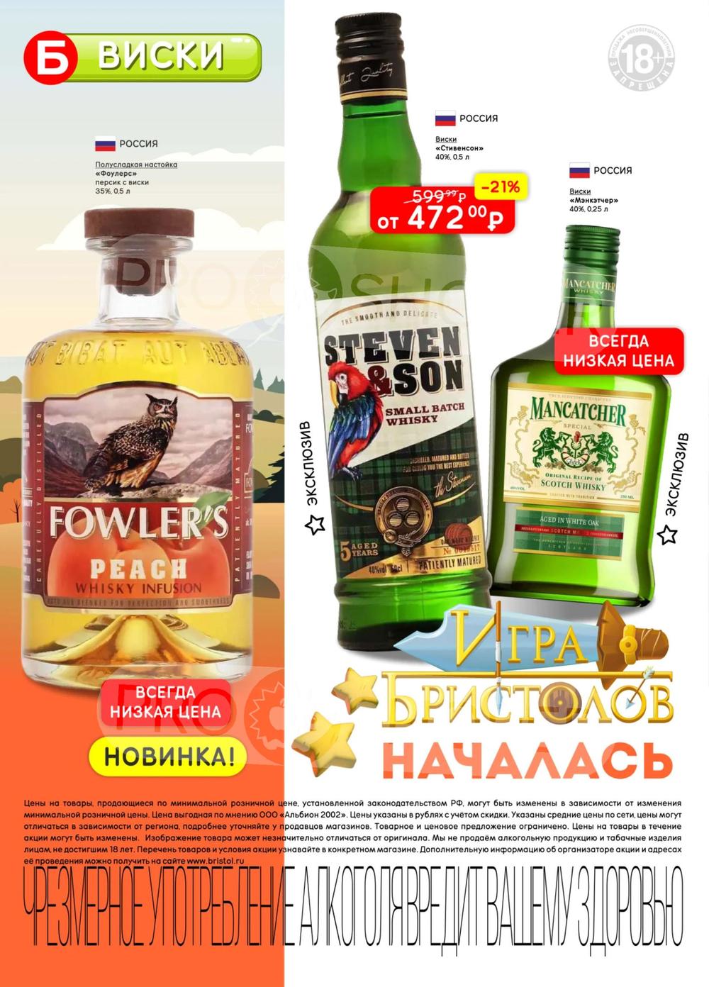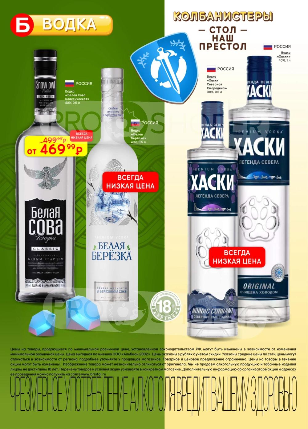 С учётом постоянного роста цен на данные виды продукции во многих торговых точках стали появляться контрафактные и контрабандные товары сомнительного качества. «Бристоль» поставил перед собой высокую цель - посредством широкого выбора по выгодным ценам предотвратить распространение на рынке нелегальной продукции, наносящий урон населению и государству. Покупая продукцию из каталога по акции, можно приобретать товары высокого качества по доступным ценам со скидкой.